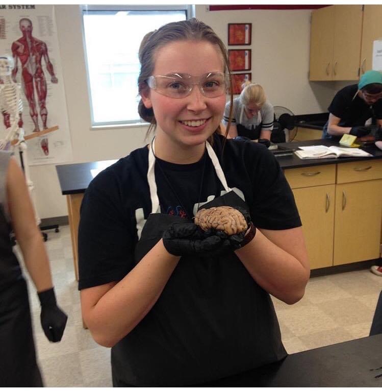 I am holding a lambs brain in this photo. Yes, This is pretty sad but it was donated for science.